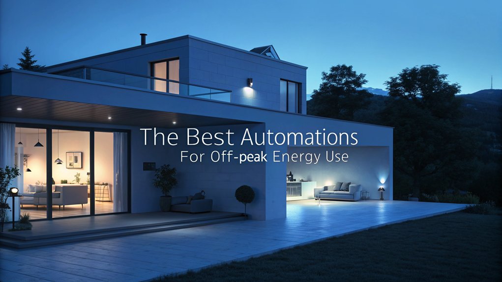 By embracing these automations, you’ll channel the wisdom of Da Vinci’s precision and Einstein’s efficiency, optimizing your home’s energy use during off-peak hours. Data shows a significant reduction in energy costs and environmental impact when you schedule dishwashers, washing machines, and electric vehicles wisely. Smart plugs and real-time tariff adjustments further enhance efficiency. As with any well-oiled machine, integrating automated controls for heating, cooling, and lighting guarantees your home operates harmoniously within the energy grid.