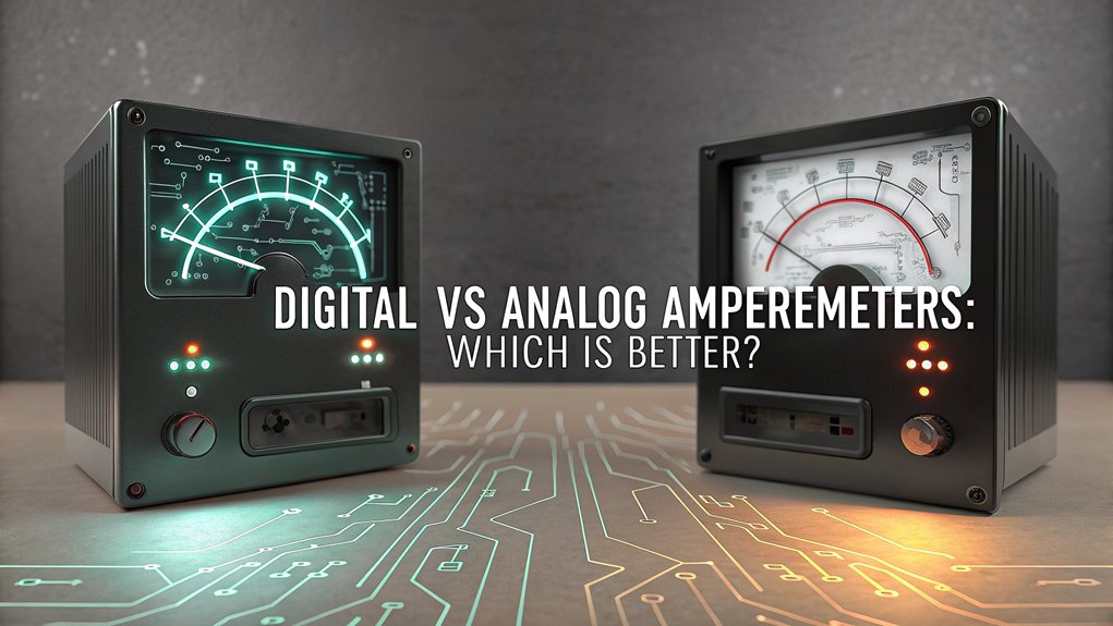 When choosing between digital and analog amperemeters, consider your needs. Digital meters excel in precision and advanced features, ensuring accurate readings with minimal interference. Analog meters offer quick response to current changes and don’t require power, making them ideal for dynamic environments or fieldwork. Each type has specific advantages, and your choice depends on application demands, convenience, and user familiarity. For a deeper understanding, there’s more to uncover that can guide your decision.