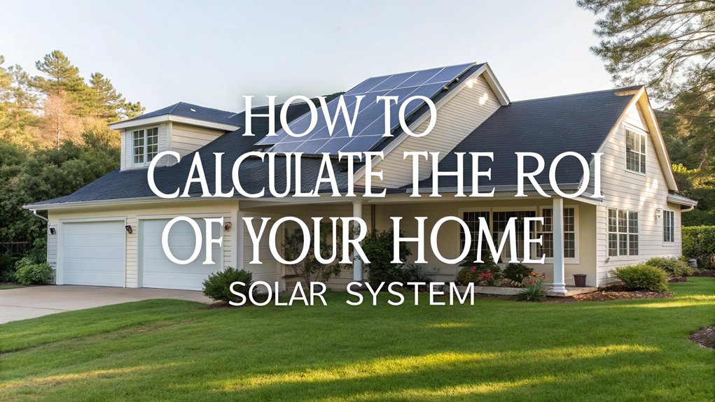 To calculate your home solar system’s ROI, first determine installation and maintenance costs, factoring in Federal Solar Tax Credits and local incentives. Compare this to lifetime electricity savings using the formula: Cost per kWh x Monthly usage x 12 x 25 years, adjusting for rate increases. Assess annual savings against system costs for a payback timeframe. Typically, average solar investments yield a 20% ROI. Understanding these elements further helps optimize your solar investment strategy.