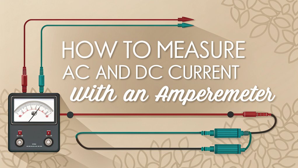 To measure AC or DC current with an amperemeter, start by ensuring the meter is correctly set for the type of current. For AC, use a clamp meter, setting it to the “A” position with the wave symbol, and center one wire in the clamp. For DC, set a traditional ammeter to the highest range, insert in series, and confirm the red lead connects to positive. Always prioritize safety by ensuring connections are correct and power is off. Learn further techniques as you proceed.